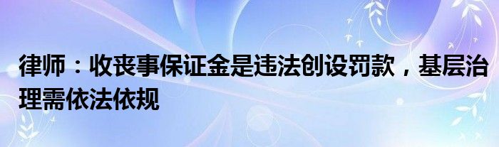 律师:收丧事保证金是违法创设罚款,基层治理需依法依规