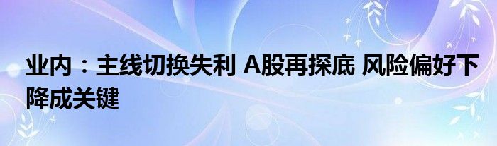 业内:主线切换失利 A股再探底 风险偏好下降成关键
