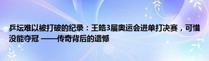 乒坛难以被打破的纪录:王皓3届奥运会进单打决赛,可惜没能夺冠 ——传奇背后的遗憾