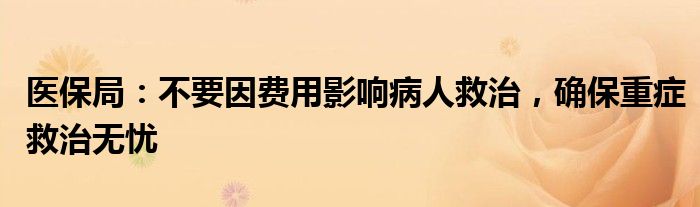 医保局:不要因费用影响病人救治,确保重症救治无忧
