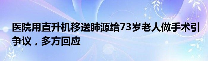 医院用直升机移送肺源给73岁老人做手术引争议,多方回应
