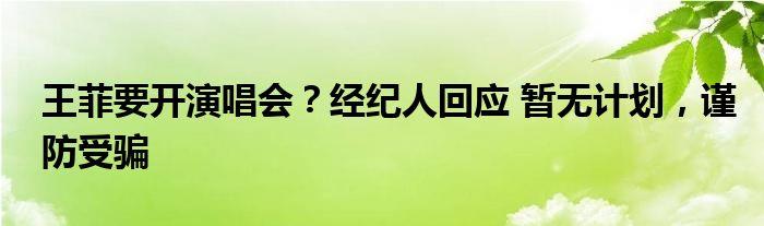 王菲要开演唱会?经纪人回应 暂无计划,谨防受骗