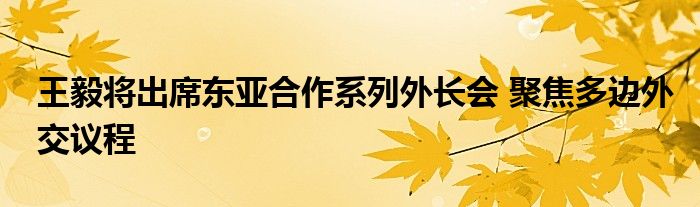 王毅将出席东亚合作系列外长会 聚焦多边外交议程