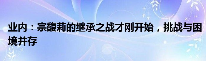 业内:宗馥莉的继承之战才刚开始,挑战与困境并存