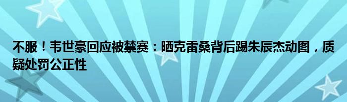 不服!韦世豪回应被禁赛:晒克雷桑背后踢朱辰杰动图,质疑处罚公正性