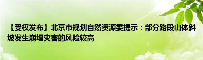 【受权发布】北京市规划自然资源委提示:部分路段山体斜坡发生崩塌灾害的风险较高