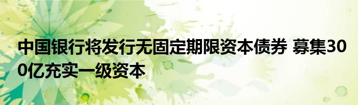 中国银行将发行无固定期限资本债券 募集300亿充实一级资本
