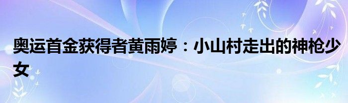 奥运首金获得者黄雨婷:小山村走出的神枪少女