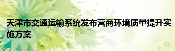 天津市交通运输系统发布营商环境质量提升实施方案