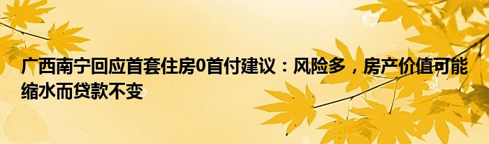 广西南宁回应首套住房0首付建议:风险多,房产价值可能缩水而贷款不变