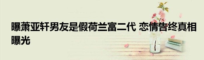 曝萧亚轩男友是假荷兰富二代 恋情告终真相曝光