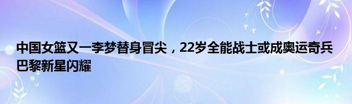 中国女篮又一李梦替身冒尖,22岁全能战士或成奥运奇兵 巴黎新星闪耀