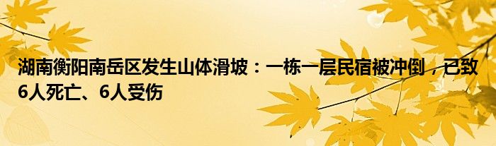 湖南衡阳南岳区发生山体滑坡:一栋一层民宿被冲倒,已致6人死亡、6人受伤