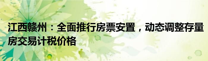 江西赣州:全面推行房票安置,动态调整存量房交易计税价格