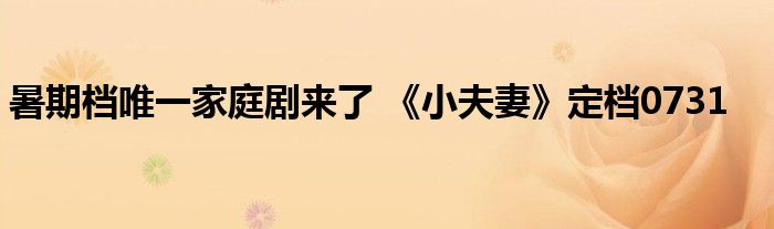 暑期档唯一家庭剧来了 《小夫妻》定档0731