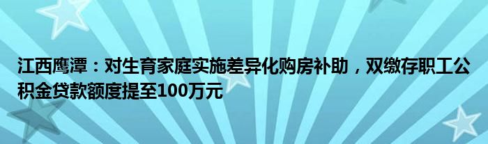 江西鹰潭:对生育家庭实施差异化购房补助,双缴存职工公积金贷款额度提至100万元