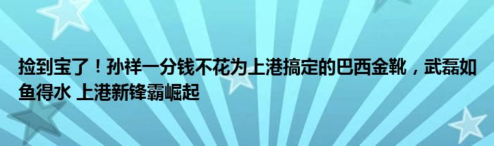 捡到宝了!孙祥一分钱不花为上港搞定的巴西金靴,武磊如鱼得水