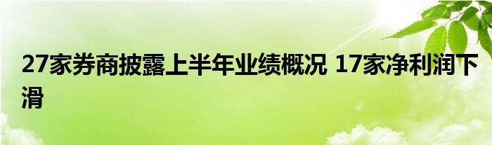 27家券商披露上半年业绩概况 17家净利润下滑