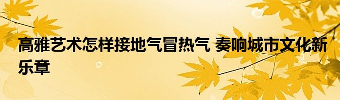 高雅艺术怎样接地气冒热气 奏响城市文化新乐章