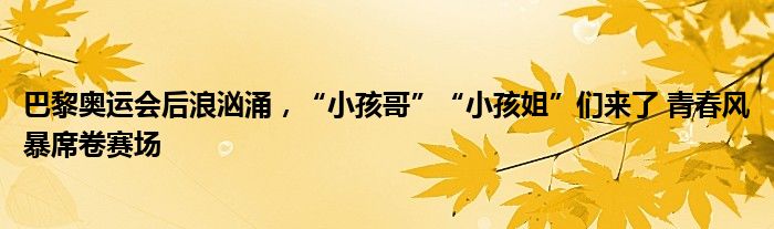 巴黎奥运会后浪汹涌,“小孩哥”“小孩姐”们来了 青春风暴席卷赛场