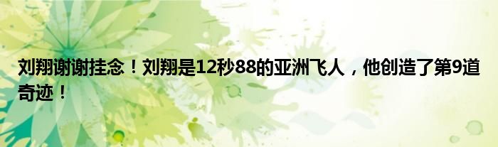刘翔谢谢挂念!刘翔是12秒88的亚洲飞人,他创造了第9道奇迹!