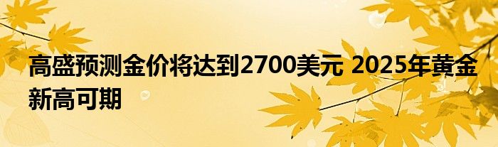 高盛预测金价将达到2700美元 2025年黄金新高可期