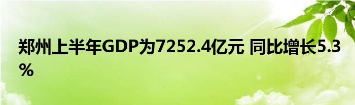 郑州上半年GDP为7252.4亿元 同比增长5.3%