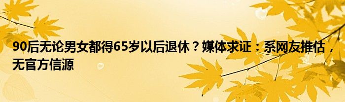 90后无论男女都得65岁以后退休?媒体求证:系网友推估,无官方信源