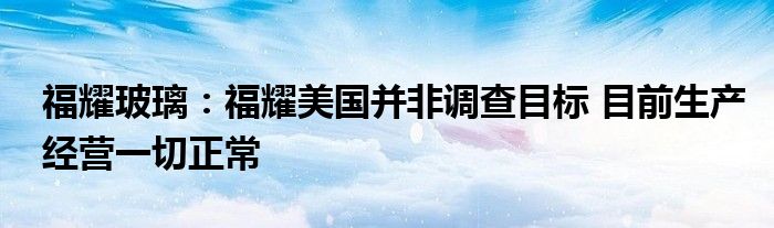 福耀玻璃:福耀美国并非调查目标 目前生产经营一切正常