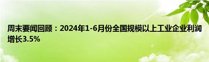 周末要闻回顾:2024年1-6月份全国规模以上工业企业利润增长3.5%