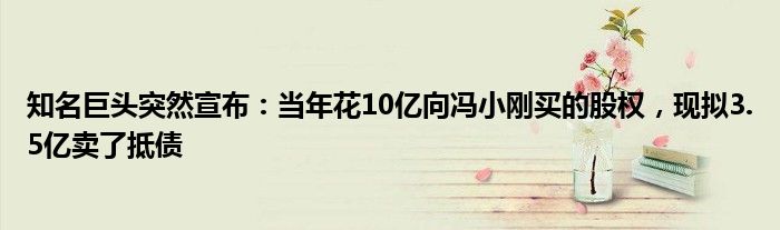 知名巨头突然宣布:当年花10亿向冯小刚买的股权,现拟3.5亿卖了抵债