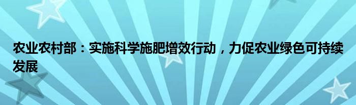 农业农村部:实施科学施肥增效行动,力促农业绿色可持续发展