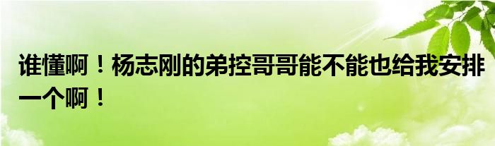 谁懂啊!杨志刚的弟控哥哥能不能也给我安排一个啊!