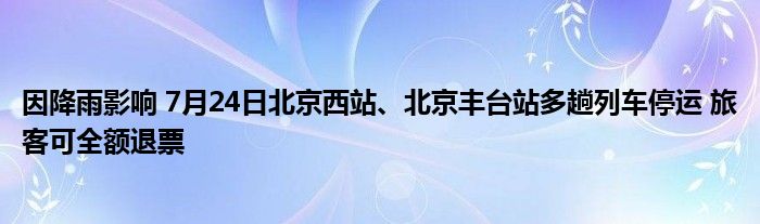 因降雨影响 7月24日北京西站、北京丰台站多趟列车停运 旅客可全额退票