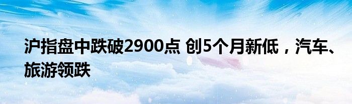 沪指盘中跌破2900点!沪指继续走低,盘中跌破2900点,创近5个月新低。汽车、旅游等板块跌幅居前。