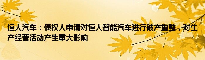 恒大汽车:债权人申请对恒大智能汽车进行破产重整,对生产经营活动产生重大影响