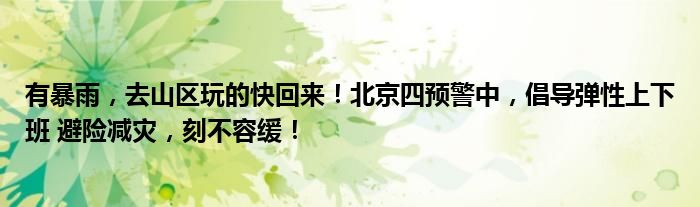 有暴雨,去山区玩的快回来!北京四预警中,倡导弹性上下班 避险减灾,刻不容缓!