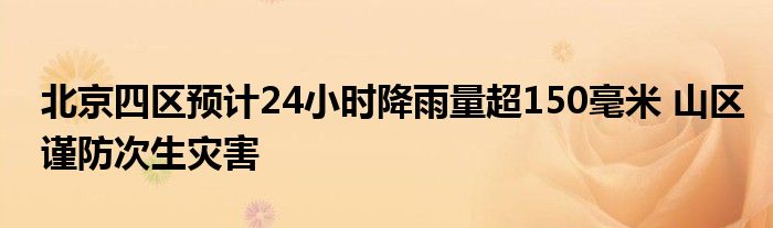 北京四区预计24小时降雨量超150毫米 山区谨防次生灾害