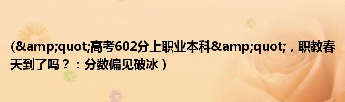 ("高考602分上职业本科",职教春天到了吗?:分数偏见破冰)
