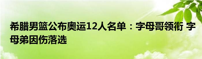 希腊男篮公布奥运12人名单:字母哥领衔 字母弟因伤落选