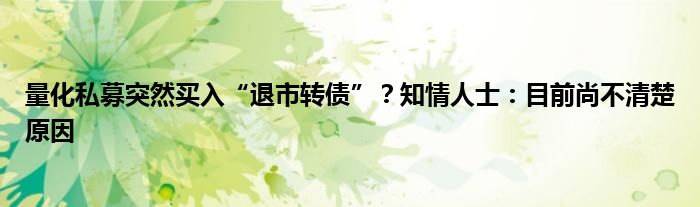 量化私募突然买入“退市转债”?知情人士:目前尚不清楚原因