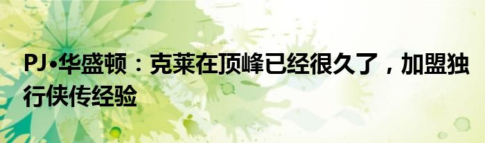 PJ·华盛顿:克莱在顶峰已经很久了,加盟独行侠传经验