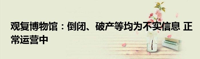 观复博物馆:倒闭、破产等均为不实信息 正常运营中