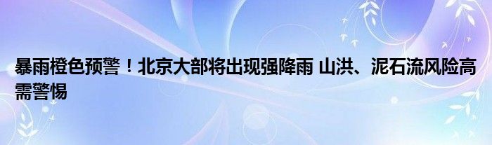 暴雨橙色预警!北京大部将出现强降雨 山洪、泥石流风险高需警惕