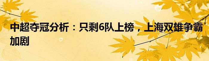 中超夺冠分析:只剩6队上榜,上海双雄争霸加剧