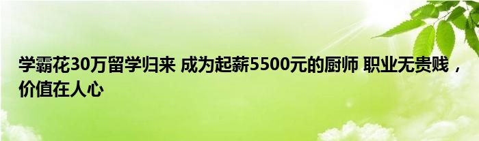 学霸花30万留学归来 成为起薪5500元的厨师 职业无贵贱,价值在人心