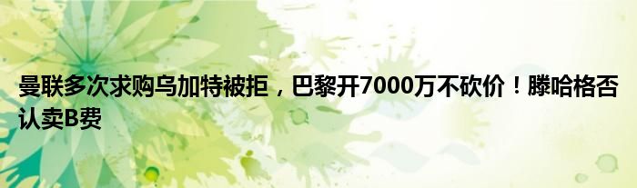 曼联多次求购乌加特被拒,巴黎开7000万不砍价!滕哈格否认卖B费