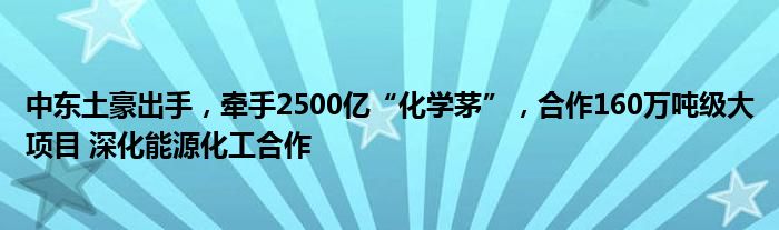 中东土豪出手,牵手2500亿“化学茅”,合作160万吨级大项目