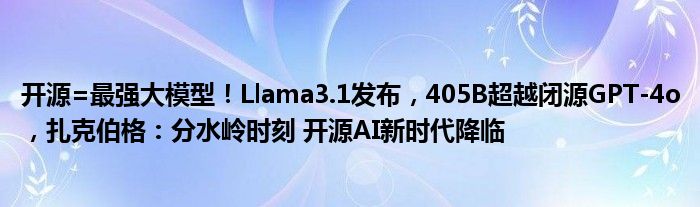 开源=最强大模型!Llama3.1发布,405B超越闭源GPT-4o,扎克伯格:分水岭时刻 开源AI新时代降临
