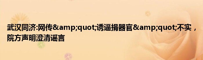 武汉同济:网传"诱逼捐器官"不实,院方声明澄清谣言